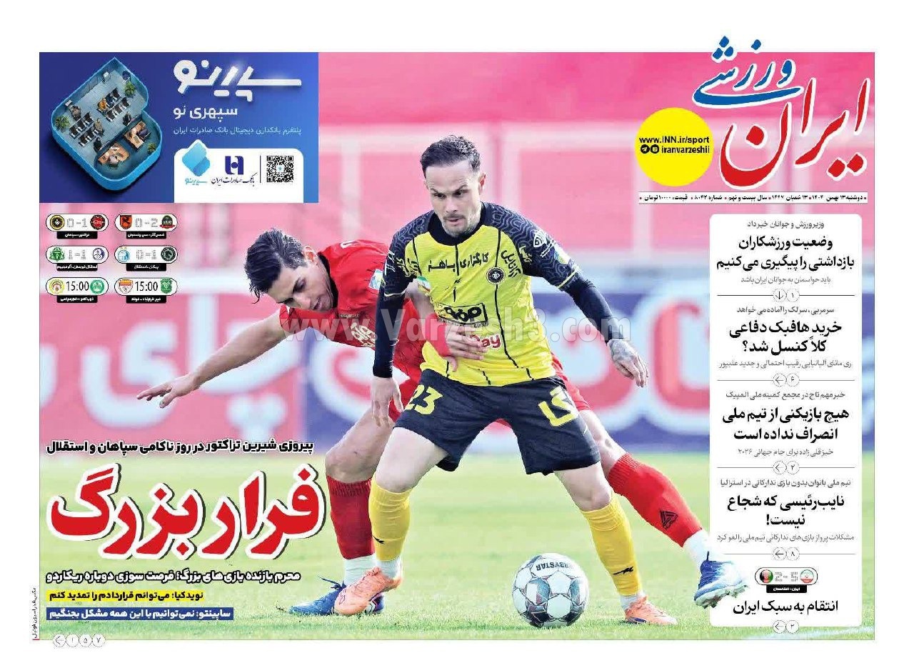 روزنامه های ورزشی دوشنبه 13 بهمن 1404 | حاشیه ورزش