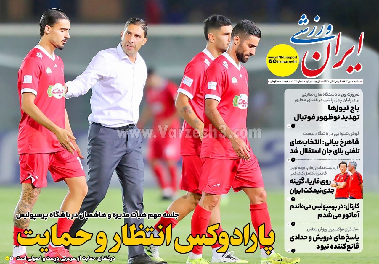 روزنامه های ورزشی دوشنبه 7 مهر 1404 | حاشیه ورزش