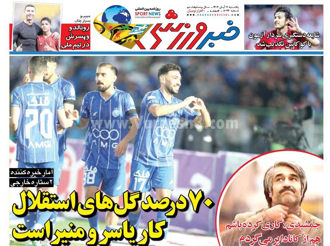 روزنامه های ورزشی یکشنبه 11 آبان 1404 | حاشیه ورزش