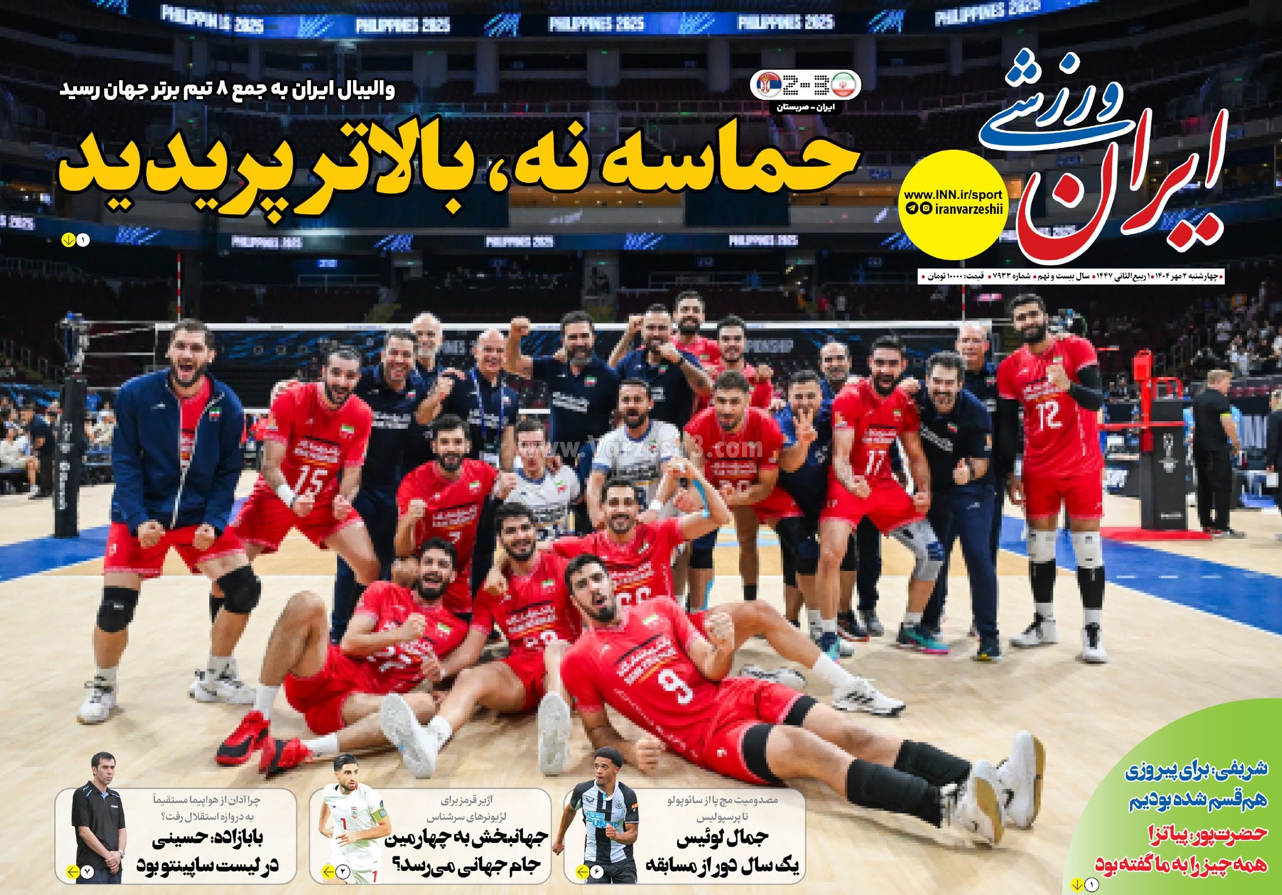 روزنامه های ورزشی چهارشنبه 2 مهر 1404 | حاشیه ورزش